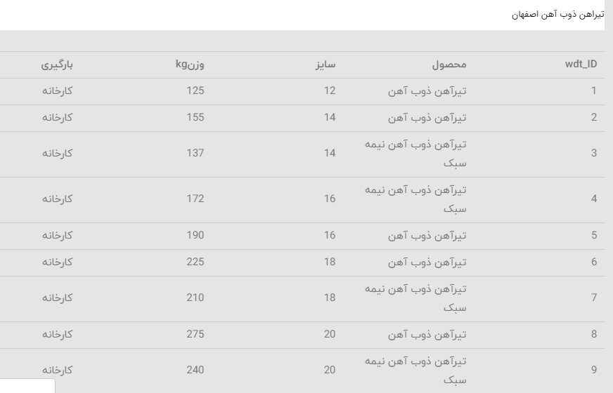 اعلام موجودی تیرآهن (IPE) در انبار دیجی آهن