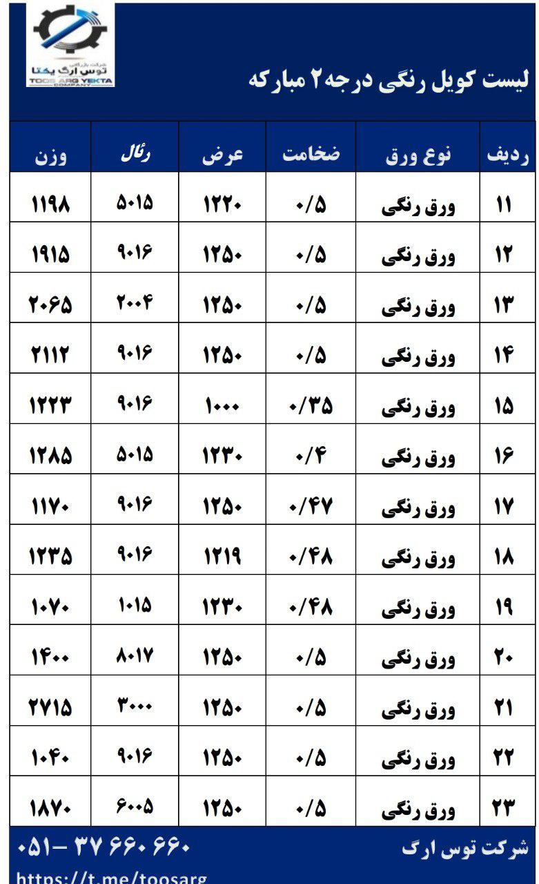 کویل رنگی 0/50*1250 کرم رنگ مبارکه پا برش قم مدیر عامل: اصغر حیدری عرضه مستقیم و عمده انواع ورق های صنعتی و ساختمانی همراه با فاکتور رسمی تلفن دفتر: 02177187351 الی5