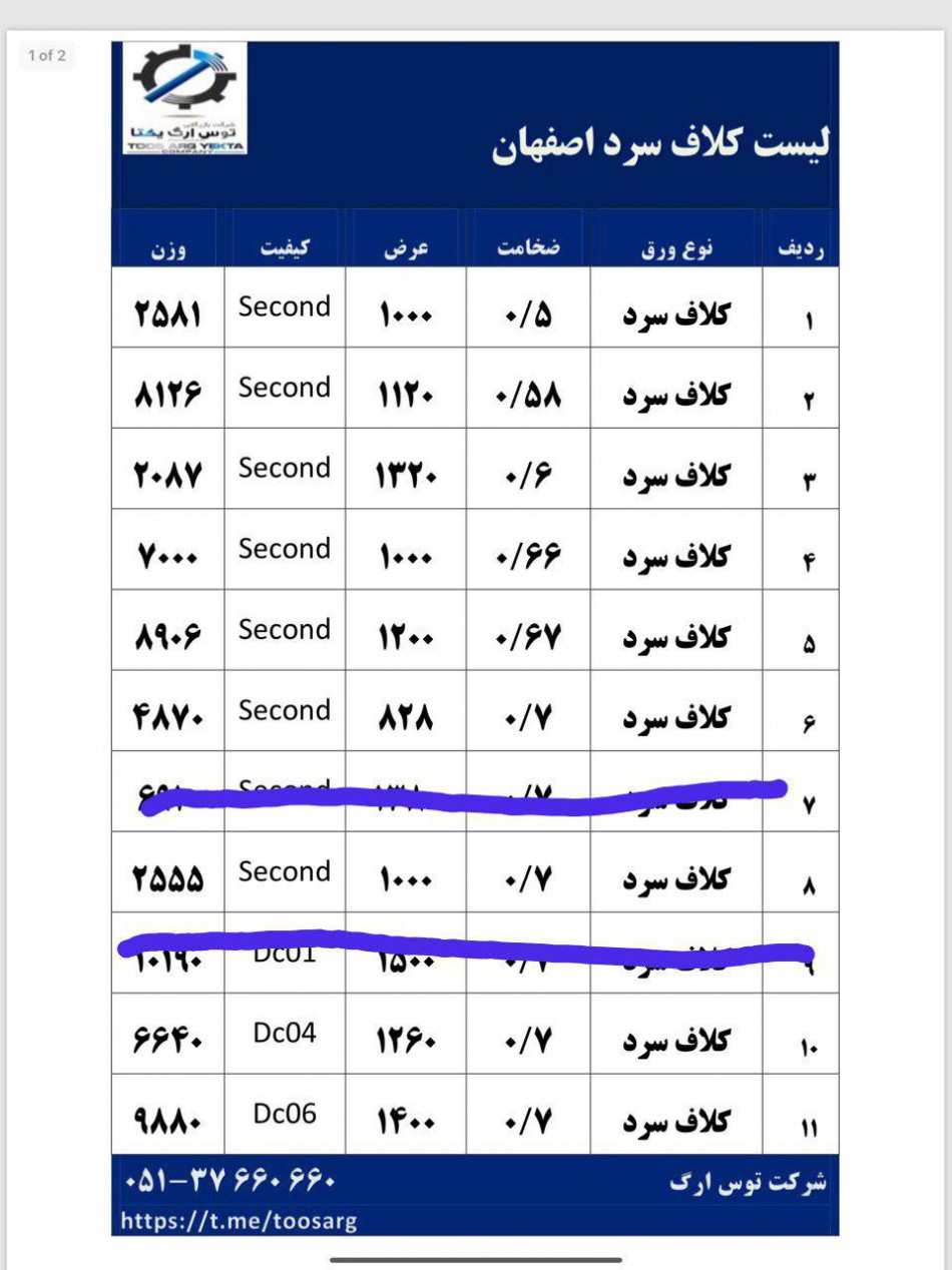 آذین پروفیل سپاهان (بزرگمنش) 70×1465 st16 9ton 70×1000 st14 5ton 60×1050 st14 2rol 7 toni انبار اصفهان 70×1500 st14 انبار اصفهان ظرفیت