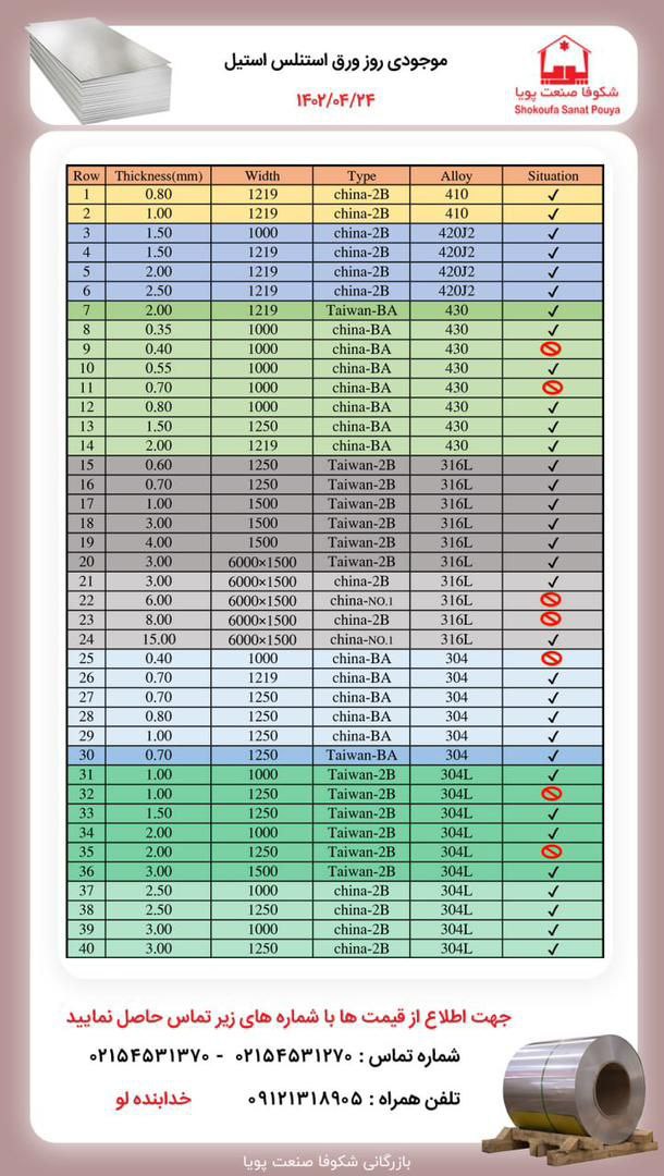 💢بازرگانی #لاوین_آلیاژ_آریانا ⚜️#A36 پوسكو كره و اكراين موجود است ورق به ابعاد٦*٢ و ١٢*٢ مشكى و به شرط سلامت با گواهى كيفيت صورت كامل +قيمت 👇🏼 8- 10- 12- 15- 20- 25- 30- 35- 40- 45- ⚜️#A516 پوسكو كره و اكراين موردى موجود است ورق به ابعاد٦*٢ و ١٢*٢ مشكى و به شرط سلامت با گواهى كيفيت صورت كامل +قيمت 👇🏼 8-٤٩٠٠٠ 10-٣٩٠٠٠ 12-٣٩٠٠٠ 15-٣٩٠٠٠ 20-٣٥٠٠٠ 25-٣٥٠٠٠ 30-٣٥٠٠٠ 35-٣٦٠٠٠ 40-٣٥٠٠٠ 45-٤٠٠٠٠ 50-٤٠٠٠٠ پوسكو كره a516-گريد ٧٠ اكراين a516-گريد ٧٠ ⚜️ورق A516 4- 5- 6- 8- 10- 12- 15- عرض ١/٥ ⚜️ورق دريايى A36 5-6-8-10-12-15 عرض ١/٥ ⚜️a283 5-6-8-10-12-15 عرض ١/٥ ⚜️#A516 اكسين ابعاد٦*٢ و ١٢*٢ 10-۴٢٠٠٠ 12-۴٢٠٠٠ ⬅️ با مدیریت پورجمالی 🌐 t.me/arianafoolad 🆔https://foolad24.com/profile/12813