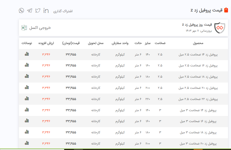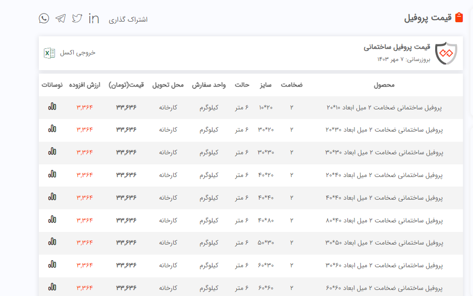 اعلام موجودی پروفیل صنعتی ضخیم