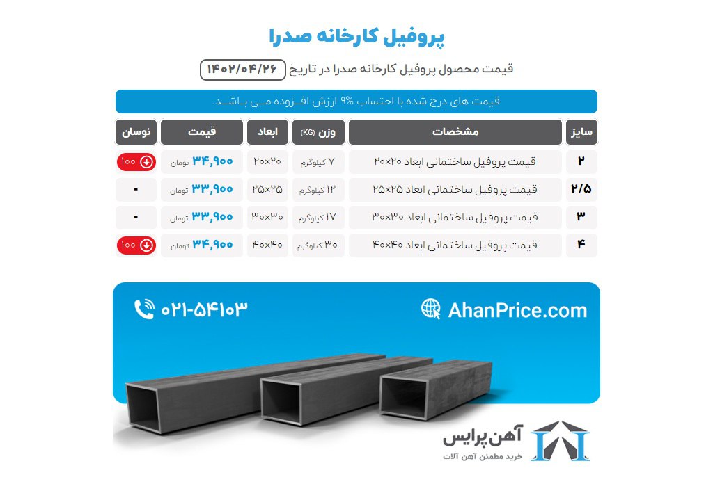 شرکت بازرگانی رادبرش اسپیدان پروفیل قوطی پروفیل ضخامت۹۰در۹۰ پروفیل ضخامت۷۰در۷۰ پروفیل ضخامت۴۰در۸۰ پروفیل ضخامت۴۰در۴۰ مدیریت(صادقی) ☎️09132947031 مدیر فروش(مهرعلیان) ☎️09002947031 📞031-37353471 📞031-37353472 📞031-37353477 ⭕عرضه محصولات فولادی ورق (سیاه،روغنی،گالوانیزه)