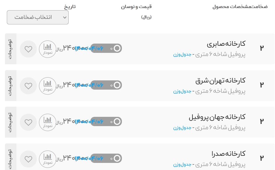 #پروفیل کارخانه کیان پرشیا 🗓 یکشنبه 6 تیر ماه 1400 🗓 ثابت↔️ پروفیل 2 :24000 پروفیل 2/5 : 23000