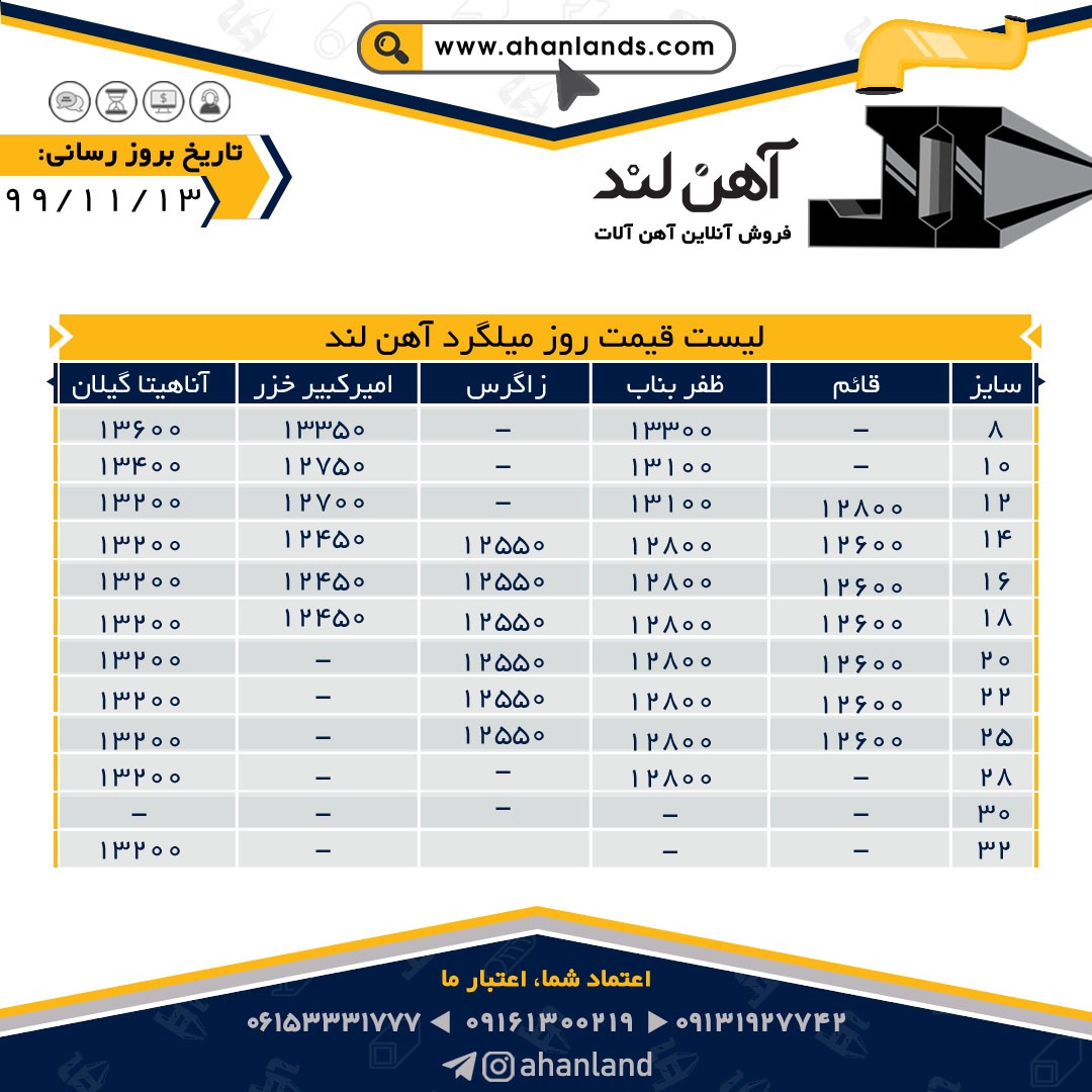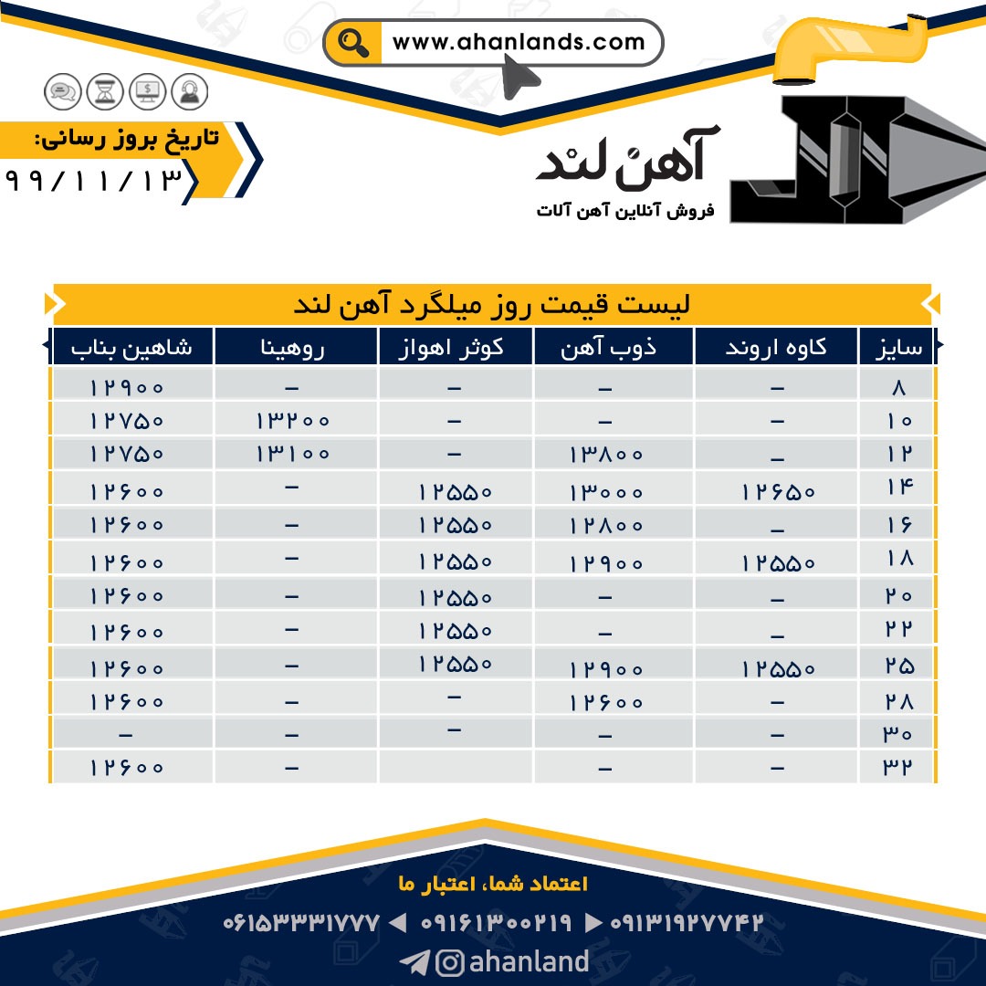 🔴آهن لند🔴 ⭕لیست قیمت انواع محصولات فولادی در تاریخ: 1399/11/09 برای مشاهده آنلاین قیمت انواع مقاطع فولادی به وب سایت WWW.AHANLANDS.COM مراجعه فرمایید. ⚜اعتماد شما اعتبار ماست⚜ ارتباط با کارشناسان ما: ☎️۰۶۱۵۳۳۳۱۷۷۷ 📱۰۹۱۳۱۹۲۷۷۴۲ 📱۰۹۱۶۱۳۰۰۲۱۹ 📍آدرس تلگرام آهن لند @ahanlandss 📍آدرس اینستاگرام آهن لند https://www.instagram.com/ahanland/?hl=en