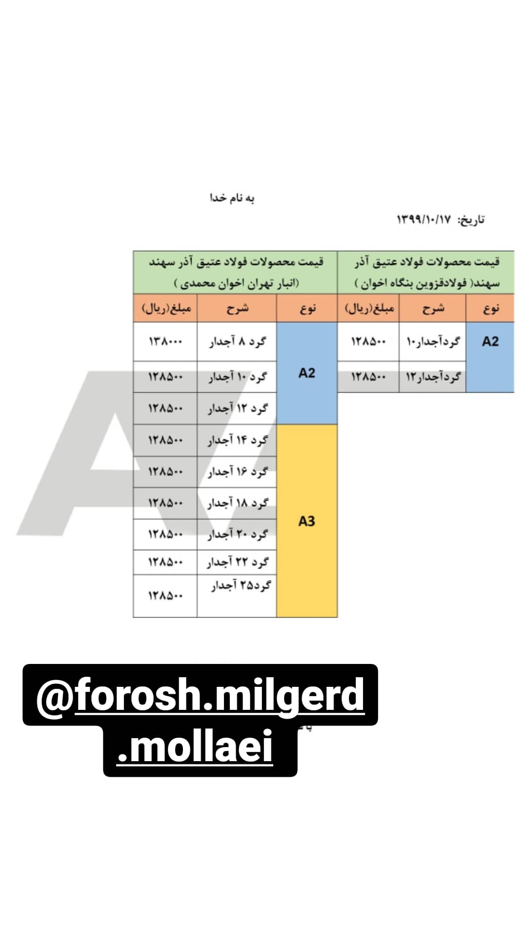 👈 انبار تهران 👉 اهورا مزدا ✳️میگرد ۶/۵ ساختمانی.............14700 تومان ✳️میلگرد ۸ قزوین......................13500 تومان ✳️میلگرد۱۰و۱۲ قزوین................13000 تومان ✳️میلگرد۱۰ تاکستان................12950 تومان ✳️میلگرد ۱۰ و ۱۲ آرین...............13300 تومان ✳️میلگرد ۱۰ و ۱۲ ابهر................13050 تومان ✳️میلگرد ۱۴ تا ۲۵ ابهر..............12850تومان ✳️میلگرد ۱۸ تا ۲۲ ابرکوه............12850 تومان ✳️میلگرد ۱۰ امیر کبیر................13600 تومان ✳️میلگرد ۱۲ امیر کبیر................13500 تومان ✳️میلگرد ۱۴ تا ۲۵ امیر کبیر.........12900 تومان ✳️میلگرد ۱۴ تا ۲۰ آریا ذوب..........12900 تومان ✳️میلگرد ۱۴ الی ۲۵ نیشابور.......13150 تومان ✳️میلگرد ۱۴ الی ۲۵ کاشان.........13100 تومان ✳️میلگرد ۱۸ تا ۲۵ هیربد.............12800 تومان ✳️میلگرد ۱۴ تا ۲۰ دماوند............12850 تومان ✳️میلگرد ۱۴ تا ۲۵بافق یزد..........12900 تومان ✳️میلگرد ۱۴ تا ۲۰ پرشین...........12800 تومان ✳️میلگرد ۱۰ تا ۲۰ سيرجان.........12850 تومان ✳️میلگرد ۱۴ تا ۲۵ قائم..............12850 تومان ✳️میلگرد ۱۴ تا ۲۰ فايكو.............12900 تومان با فاكتور رسمی ❗️کلیه قیمت ها با تایید می باشد❗️ 🌷🌷🌷🌷🌷🌷 جهت اخذ حواله و قیمت نهایی با شماره 43000800 ☎️ تماس بگیرید