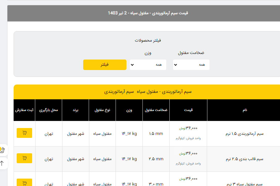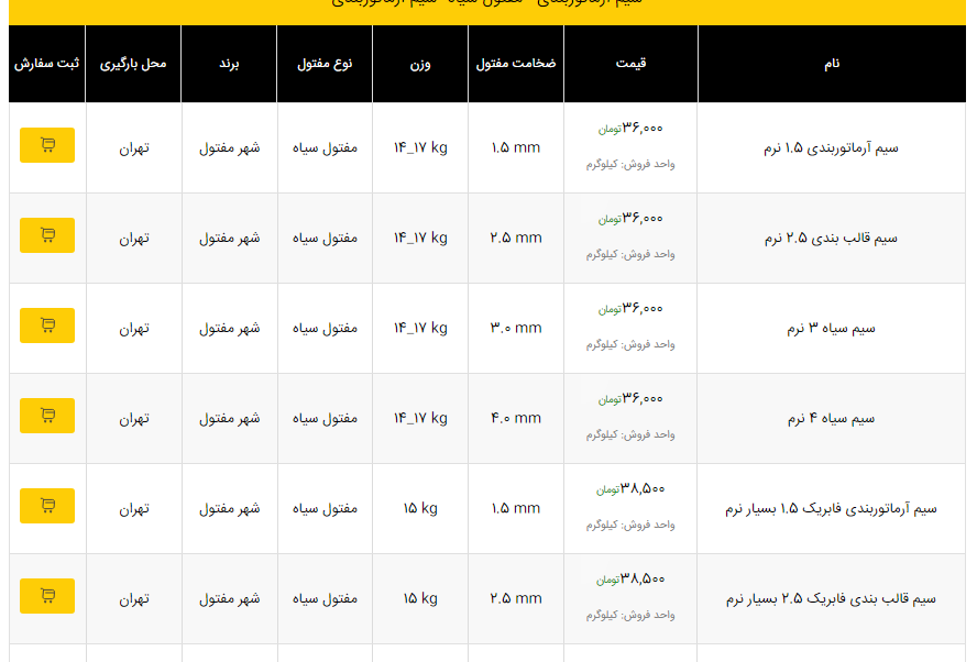 اعلام موجودی و قیمت سیم آرماتوربندی