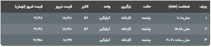آرمان گستر اقتدار (آهن آرمان) 👈 ضمانت یک خرید مطمئن👉 #قیمت روز انواع #مش #مفتولی #مش_مفتولی 🗓 شنبه، 23 اردیبهشت 1402 🗓 . 📢 قیمت روز مش مفتولی انبار تهران 📢 🔸 قطر 6 چشمه 10×10(وزن 64کیلوگرم) : ء call 🔸 قطر 6 چشمه 15×15(وزن 45 کیلوگرم) : ء call 🔸 قطر 8 چشمه 10×10 (وزن 105کیلوگرم) : 293.000 🔸 قطر 8 چشمه 15×15 (وزن 65 کیلوگرم) : 293.000 🔸 قطر 8 چشمه 20×20 (وزن 50 کیلوگرم) : 293.000 🔸 قطر 10 چشمه 10×10 (وزن 140 کیلوگرم) : 286.000 🔸 قطر 10 چشمه 15×15 (وزن 105 کیلوگرم) : 286.000 🔸 قطر 10 چشمه 20×20 (وزن 85 کیلوگرم) : 286.000 ~~~~~~~~~~~~~~~~~~ ☎️۰۲۱-۵۸۳۳۶ داخلی 115 خانم گل پرور 🌐www.ahanarman.com وب سایت @AhanArmanPrice🆔 کانال قیمت روز تلگرام