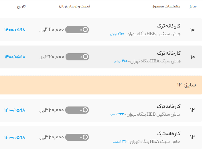 ⚜️فولاد پرایس⚜️ ☀️#چهارشنبه 1400/05/20 🟡#هاش_سبک_سنگین #انبار_تهران 🔷هاش ۱۰ سبک/سنگین 🔷هاش ۱۲ سبک/سنگین 🔷هاش ۱۴ سبک/سنگین 🔷هاش ۱۶ سبک/سنگین 🔷 هاش ۱۸ سبک/سنگین 🔷هاش ۲۰ سبک/سنگین 🔷هاش ۲۲ سبک/سنگین 🔷هاش ۲۴ سبک/سنگین 🔷هاش ۲۶ سبک/سنگین 🔷هاش ۲۸ سبک/سنگین 🔷هاش ۳۰ سبک/سنگین 🔷هاش ۳۲ سبک/سنگین 🔷هاش ۴۰ سبک/سنگین 🔷هاش ۵۵ سبک/سنگین 🔷هاش ۶۰ سبک/سنگین. #فولادپرایس ✅قیمت:تماس 📃در صورت توافق فاکتور رسمی صادر میگردد ☎️021-91003438 📱09128853438 📱09121853438 📱whatsapp:09201853438