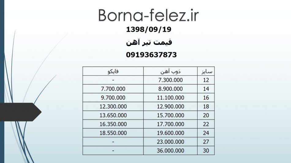 فولاد كوثر باران كارخانه فايكو (تيراهن) تيراهن ١٤ فايكو عدم توليد تيراهن ١٦ فايكو٩٥٢٠٠٠٠ تيراهن ١٨ فايكو عدم توليد تيراهن٢٠ ١٣٥٢٠٠٠٠ تيراهن ٢٢ ١٦٠٢٠٠٠٠ تيراهن ٢٤ ١٧٩٢٠٠٠٠ ((فروش با فاكتور رسمي)) 02133901620