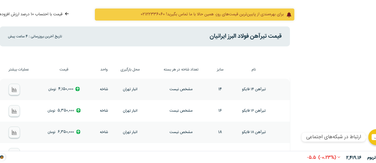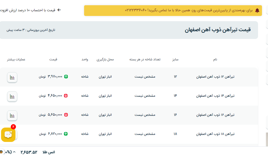 با توکل به نام اعظمت 1403.07.15 #تیر_ذوب_انبار_اصفهان_شاخه #انبار_اصفهان🔜❗️ بدون_واسطه ✅🔴 قيمت نهايي و نحوه تسويه توافقي 🔴✅ تیر 12 ذوب 120 کیلو 3950 تیر 14 ذوب 155 کیلو 4700 تیر 16 ذوب 190 کیلو 5650 تیر 18 ذوب 230 کیلو 6800 تیر 20 ذوب 270 کیلو 8300 تیر 22 ذوب 320 کیلو 9450 تیر 24 ذوب 370 کیلو 11400 تیر 27 ذوب 430 کیلو 12900 تیر 30 ذوب 500 کیلو 16300 #انبار_اصفهان🔜❗️ ✅🔴قيمت نهايي و نحوه تسويه توافقي 🔴✅ ╭━━═━⊰✹🏗✹⊱━═━━━╮ 🌐 https://webahan.com 🌐 🆔webahan🆔 ☎️ 021-53236 ☎️ ☎️ 90007008 ☎️ ☎️ 021-54857000☎️ ☎️ 021-53236000 ☎️ ╰━━═━⊰❀🏗❀⊱━═━━━╯