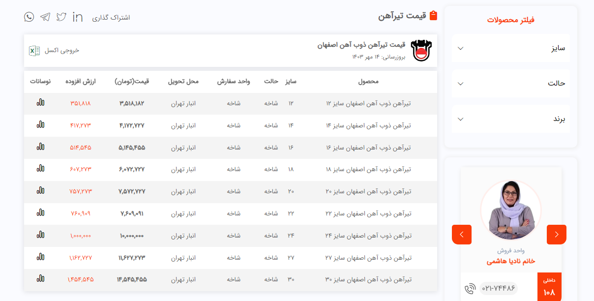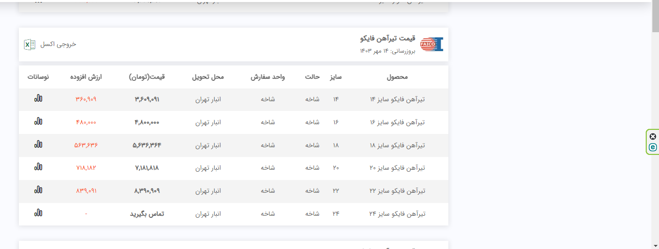 تیراهن احرامیان ✅تیر اهن سایز 14 قیمت 4.180.000 ✅تیر اهن سایز 16 قیمت 5.160.000 ✅تیر اهن سایز 18 قیمت 6.280000 ✅تیر اهن سایز 20 قیمت 7.430.000 ✅تیر اهن سایز 22 قیمت 9.130.000 ✅تیر اهن سایز 24 قیمت 10.930.000 - انبار تهران ☎️45280262 ☎️45280263 ☎️45280330