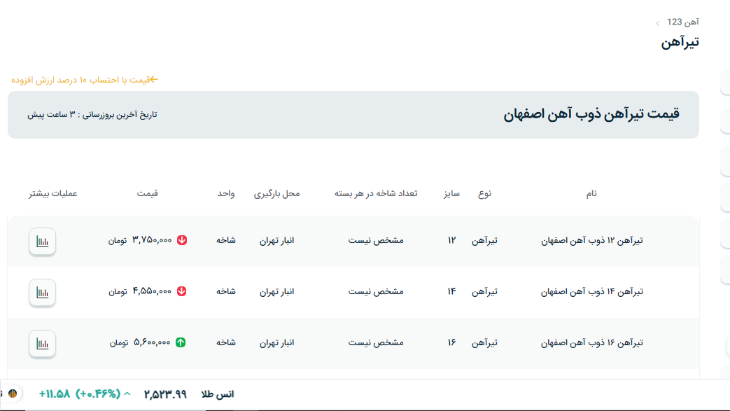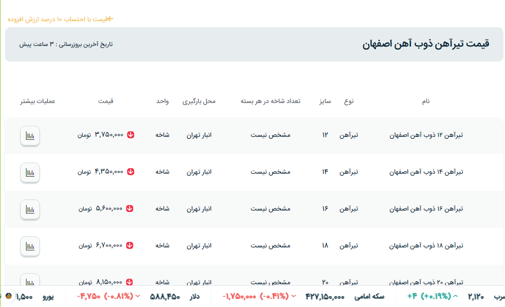 ﷽ اهن ایران 📣قیمت تیرآهن ذوب اهن اصفهان 🚚بارگیری از انبار اصفهان سه شنبه 6 شهریور ................................................................................................................................ سایز14👈 4.600.000 سایز16👈 5.600.000 سایز18👈6.650.000 سایز20👈 8.300.000 سایز22👈 9.300.000 سایز24👈10.900.000 سایز27👈 12.800.000 سایز30 👈 15.900.000 ✅فروش یکماهه با چک معتبر ثبتی ✅کلیه قیمتها با احتساب 10% مالیات بر ارزش افزوده می باشد ................................................................................................................................ ☎️031-33330900☎️ دفتر مرکزی اصفهان_اهن ایران ☎️031-33330400☎️آهن ایران
