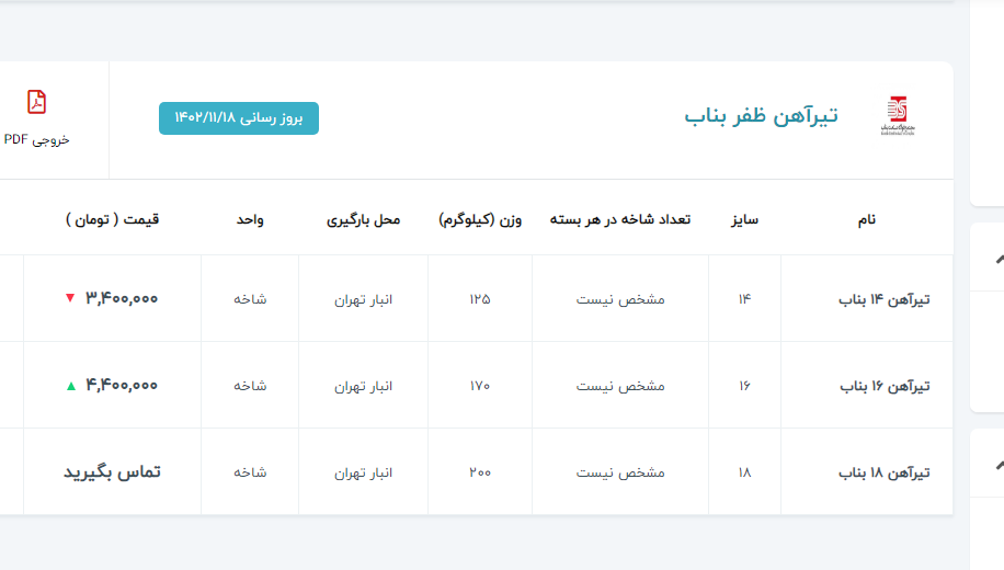 1402/11/18 شرکت فولاد خورشید ایرانیان ( شیدوش ) #انبار_تهران (اجناس امانی) #تیرآهن ⭕️بهترین قیمت هنگام خرید با نام باربری ⭕️ ➖تیرآهن 14 فایکو: ➖تیرآهن 16 فایکو: ➖تیرآهن 18 فایکو: ➖تیرآهن 20 فایکو: ➖تیرآهن 12ذوبی: ➖تیرآهن 14ذوبی: ➖تیرآهن 16ذوبی: ➖تیرآهن 18ذوبی: ➖تیرآهن 20ذوبی: ➖تیرآهن 22ذوبی: ➖تیرآهن 24ذوبی: ➖تیرآهن 27ذوبی: ➖تیرآهن 30ذوبی: ➖تیرآهن 14 i7 سبک: ➖تیرآهن 16 i7 سبک: ➖تیرآهن 18 i7 سبک: ➖تیرآهن 20 i7 سبک: ➖تیرآهن 14 یزدی: ➖تیرآهن 16 یزدی: ➖تیرآهن 18 یزدی: ➖تیرآهن 20 یزدی: ➖تیرآهن 22 یزدی: ➖تیرآهن 24 یزدی: ➖تیرآهن 14 اهواز: ➖تیرآهن 16 اهواز: ➖تیرآهن 10 اروپا: ➖تیرآهن 33 اروپا: ➖تیرآهن 36 اروپا: ➖تیرآهن 40 اروپا: ➖تیرآهن 45 اروپا: ➖تیرآهن 50 اروپا: 🛑هاش سبک و سنگین از سایز 10 تا 30 موجود میباشد🛑 ⭕️بهترین قیمت هنگام خرید با نام باربری⭕️ لینک عضویت در تلگرام https://telegram.me/shidvashironnew 🔴 تلفن ویژه 37546000 🔴 تلفن ویژه 44216016 🔴 تلفن ویژه 66834410