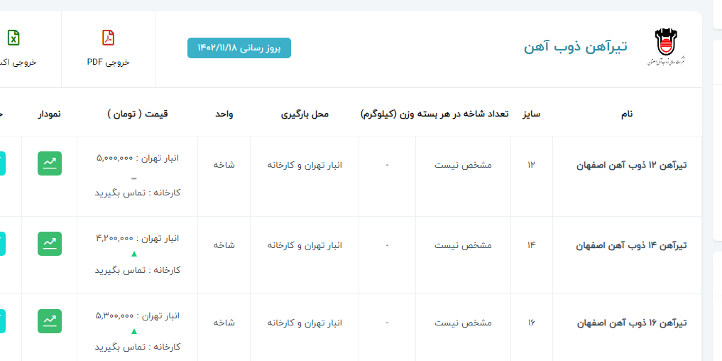 هاش ۲۰ سنگین نرمال ذوب آهن انبار اصفهان موجود