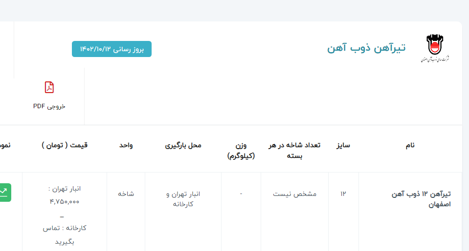 اعلام موجودی تیرآهن