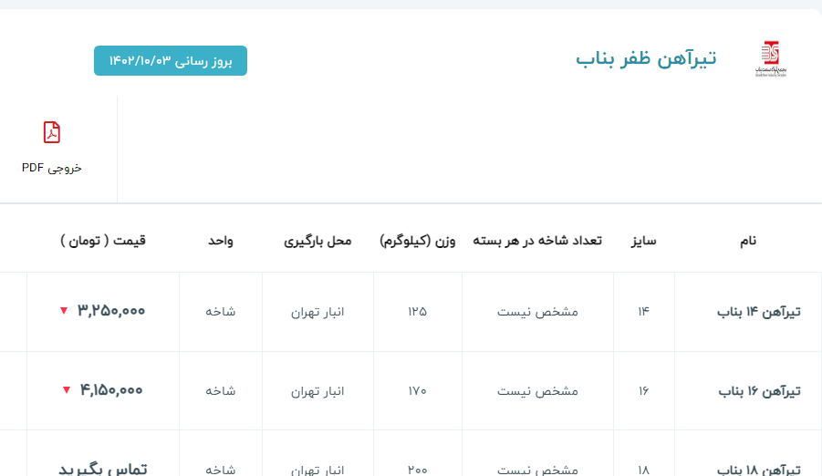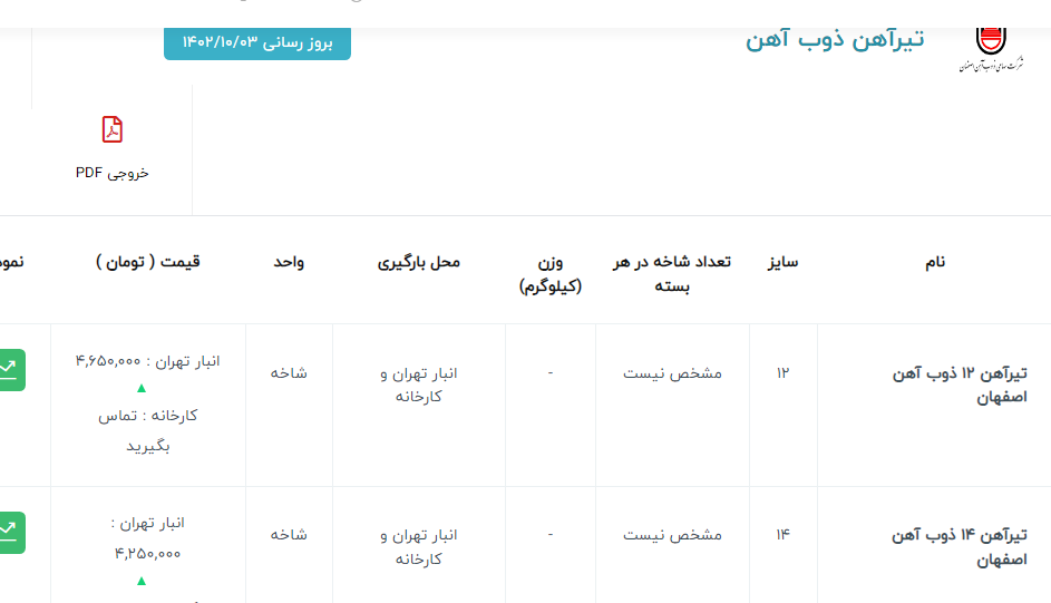 اعلام موجودی تیرآهن