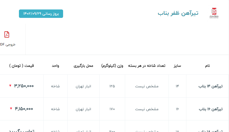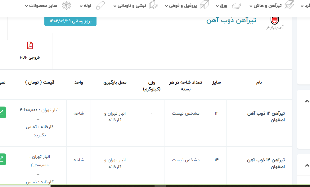 باسلام قیمتهای امروز تیرآهن اعلام شد همکاران محترم میتوانند جهت مشاهده قیمت انواع تیر آهن در انبار تهران به سایت نگین فولاد السا مراجعه نمایند و جهت خرید و دریافت تخفیف با شماره ۴۴۴۴۸۲۰۰ تماس بگیرند http://www.Neginfoolad.ir/