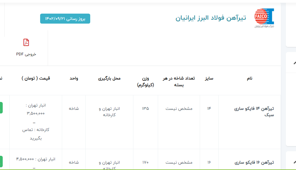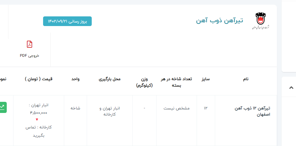 اعلام موجودی تیرآهن (IPE)