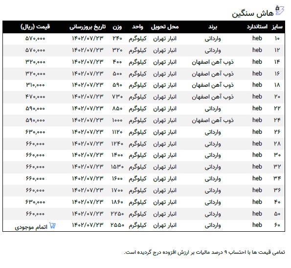 اعلام موجودی تیرآهن هاش (H)