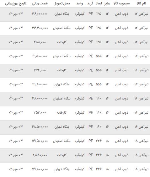 اعلام موجودی تیرآهن