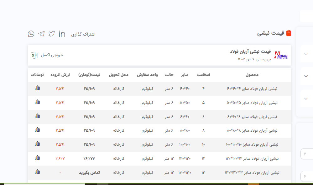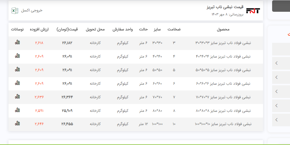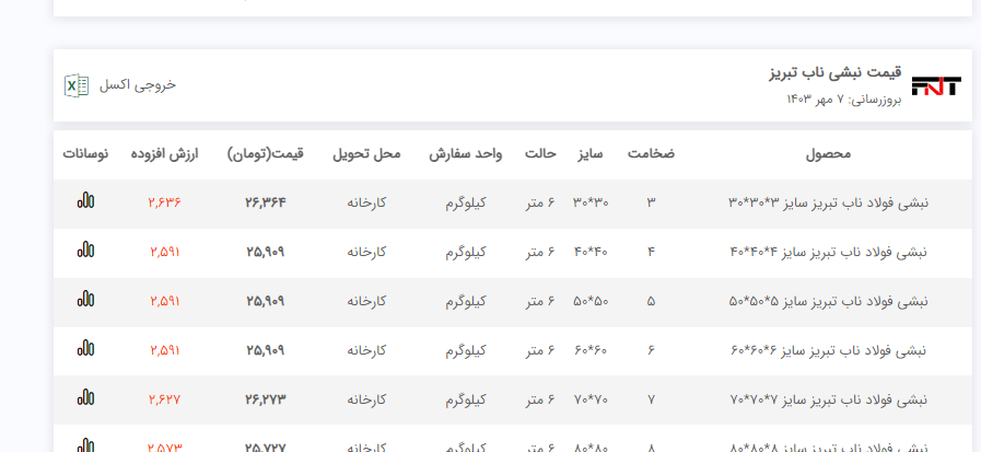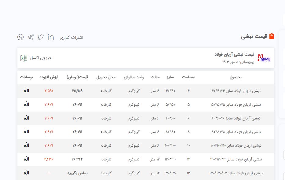 ⏱تاریخ :07 مهر 1403 🔵 قیمت نبشی 🔵 🏭 محل بارگیری :انبار تهران 📞 021-91006007 🌐 www.ahanak.com 🆔https://t.me/ahanak