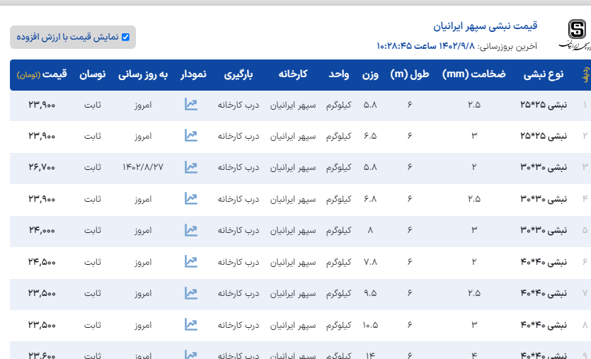 اعلام موجودی نبشی فولاد جاوید بناب " فولاد جاوید بناب " با سلام و عرض ادب *قیمت روز چهارشنبه ۱۴۰۲/۰۹/۰۸ 🔹نبشی 40*3 سبک : ۲۵۰۰۰۰ ریال 🔹نبشی 40*3 : ۲۲۶۰۰۰ ریال 🔹نبشی 40*4 سبک : ۲۲۵۵۰۰ ریال 🔹نبشی 40*4 : ۲۲۵۰۰۰ ریال 🔹نبشی 50*3 سبک : ۲۵۰۰۰۰ ریال 🔹نبشی 50*3 : ۲۲۶۰۰۰ ریال 🔹نبشی 50*4 سبک : ۲۲۵۵۰۰ ریال 🔹نبشی 50*4 : ۲۲۵۰۰۰ ریال 🔹نبشی 50*5 سبک : ۲۲۸۰۰۰ ریال 🔹نبشی 50*5 : ۲۲۵۰۰۰ ریال 🔹نبشی 60*3 : ۲۴۵۰۰۰ ریال 🔹نبشی 60*4 : ۲۳۵۰۰۰ ریال 🔹نبشی 60*5 : ۲۲۵۰۰۰ ریال 041-37780433-6