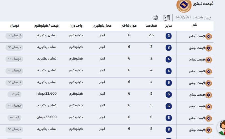 اعلام موجودی نبشی آهن یاب لیست کالای فولاد ناب تبریز : 📅 چهار شنبه : ۱۴۰۲/۹/۱ (ثبات قیمت) ♦️ نبشی ۴*۴ 💵22650 تومان ♦️نبشی ۵*۵ 💵22650 تومان ♦️ نبشی۶*۶ 💵22650 تومان ♦️ نبشی ۷*۷ 💵22650 تومان