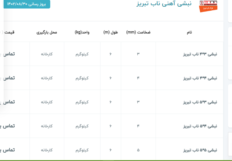 اعلام موجودی نبشی آهن یاب ❇️ لیست کالای فولاد ناب تبریز : 📅 سه شنبه : ۱۴۰۲/۸/۳۰ (ثبات قیمت) ♦️ نبشی ۴*۴ 💵22650 تومان ♦️نبشی ۵*۵ 💵22650 تومان ♦️ نبشی۶*۶ 💵22650 تومان ♦️ نبشی ۷*۷ 💵22650 تومان