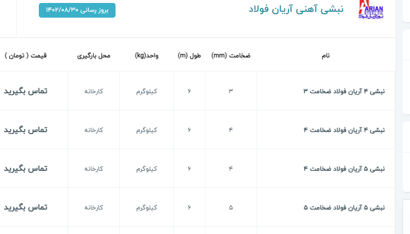 #نبض_آهن 🔺تهیه و توزیع انواع آهن آلات صنعتی و ساختمانی 🔹ورقهای روغنی، گالوانیزه، سیاه و اسیدشویی،استیل و آلومینیوم 📝انواع میلگرد آجدار و ساده 📝تیرآهن،ناودانی، نبشی،قوطی پروفیل، لوله #جهت_مشاهده_پروفایل_نبض_آهن👇 🪐https://foolad24.com/profile/13074 #جهت_مشاهده_اعلام_موجودی_نبض_آهن👇 🪐https://foolad24.com/profile/13074/inventory کسب اطلاعات بیشتر و ثبت سفارش تماس با تلفن : ☎️021_52622 📞021_91010711 🔠https://t.me/nabzahan 🪐https://nabzeahan.com/