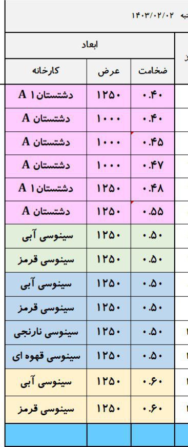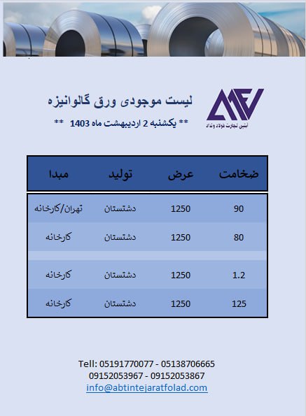 اعلام موجودی ورق گالوانیزه