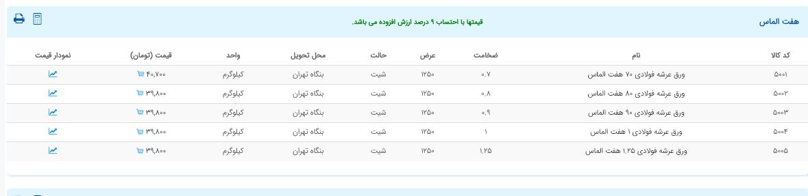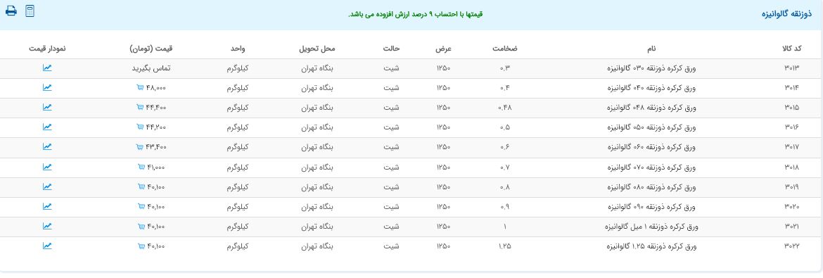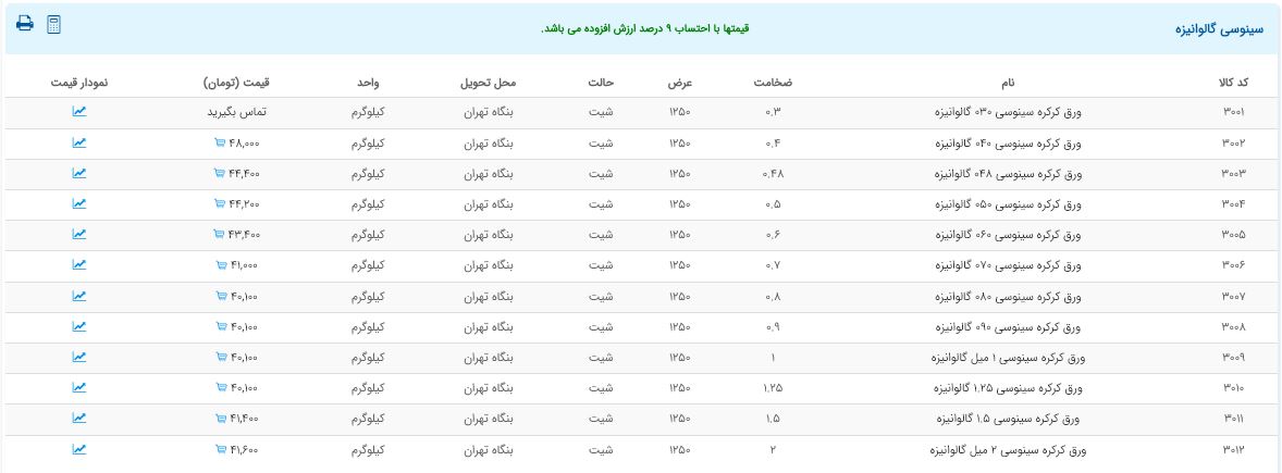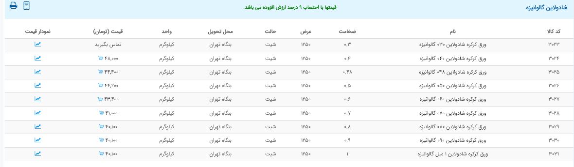 اعلام موجودی ورق گالوانیزه و رنگی