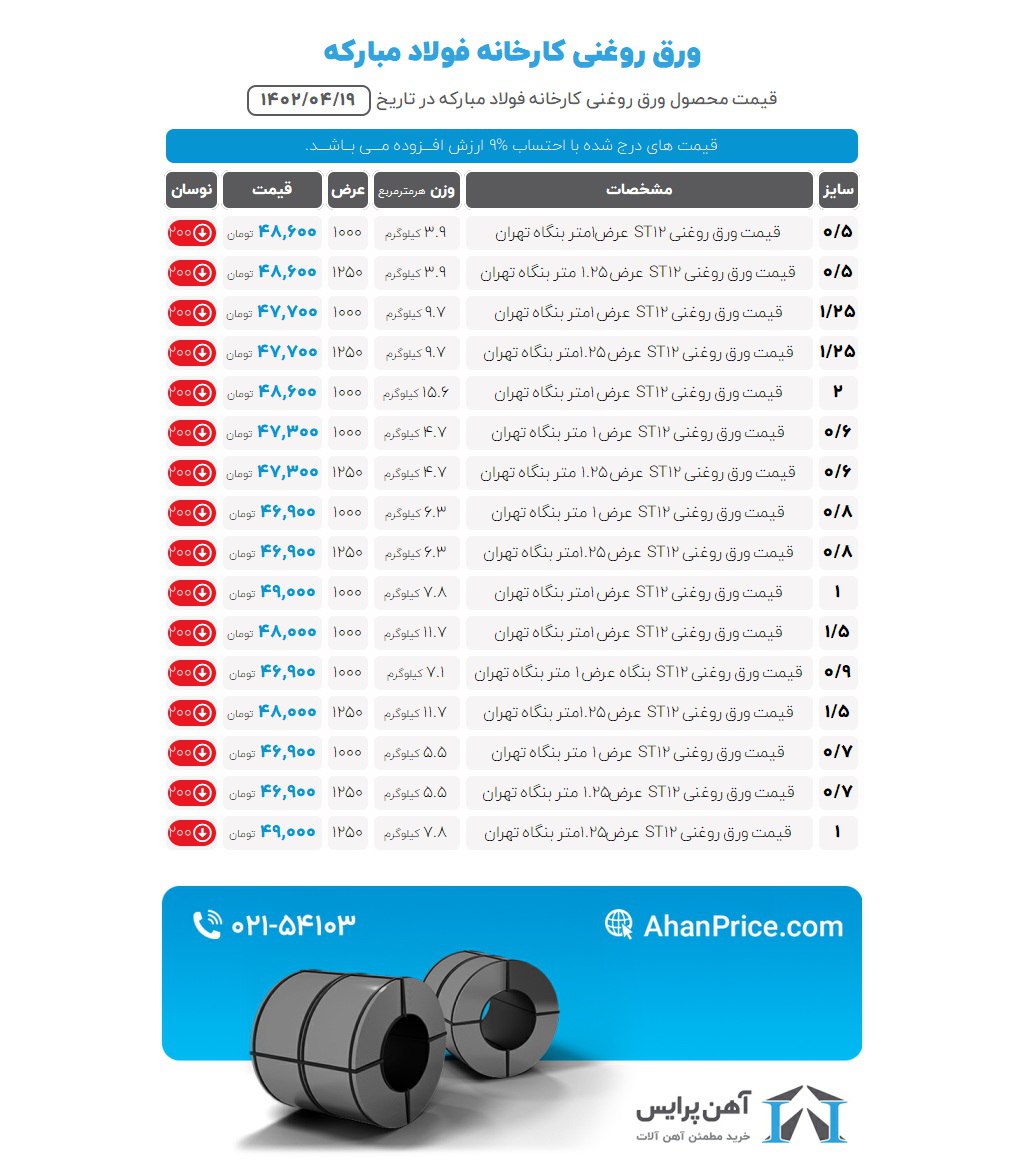 اعلام موجودی ورق گالوانیزه و رنگی