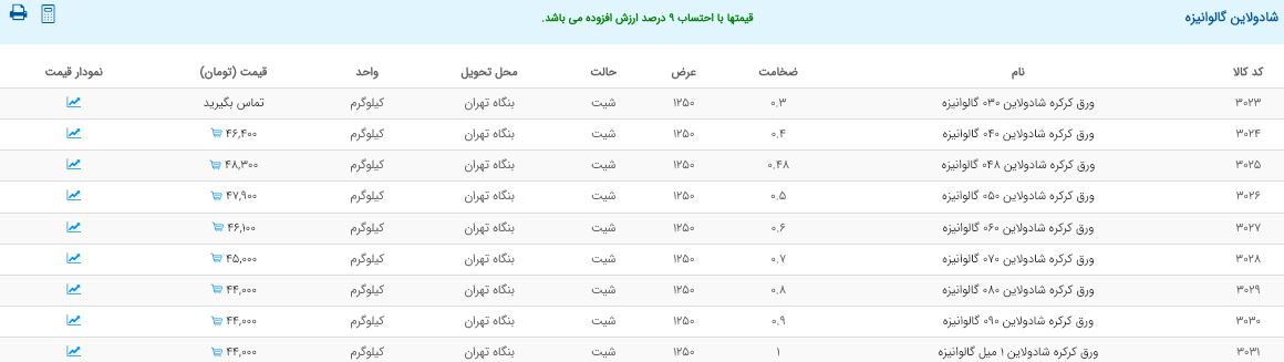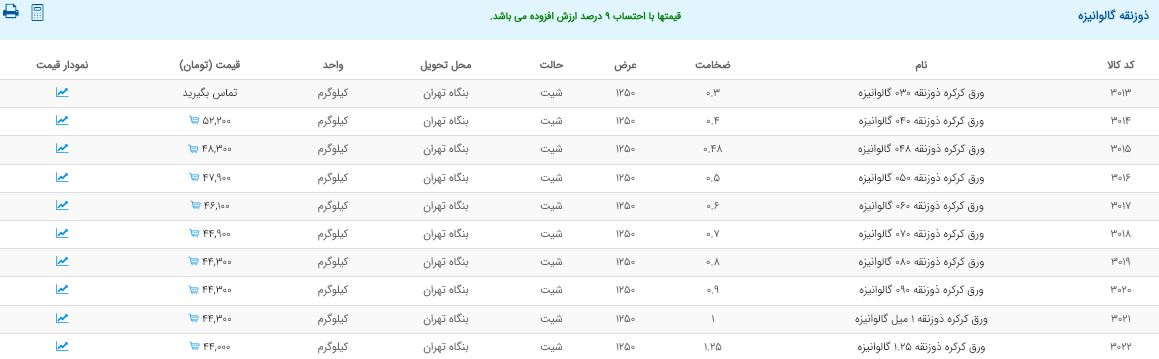 انواع ورق رنگي و گالوانيزه چيني و ايراني