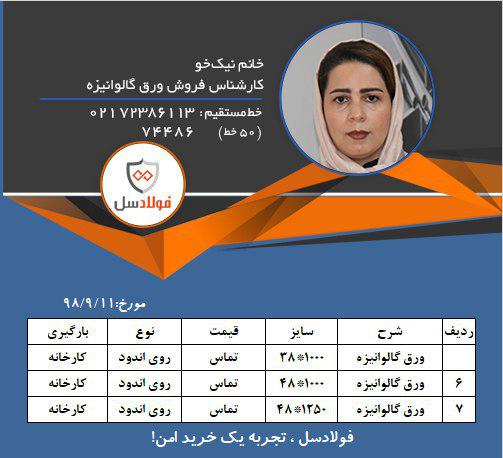 فروشنده ورق گالوانیزه فولاد درجه 1 ضخامت 75در عرض 1000 ضخامت 90در عرض 105 ضخامت 100در عرض 100 ضخامت 10در عرض 104 ضخامت 1.1در عرض 1000 ضخامت 1.2در عرض 120 ضخامت 1.20در عرض1200 ضخامت 125در عرض 112 در انبار اصفهان موجود میباشد دهکردی اصفهان 09132242214
