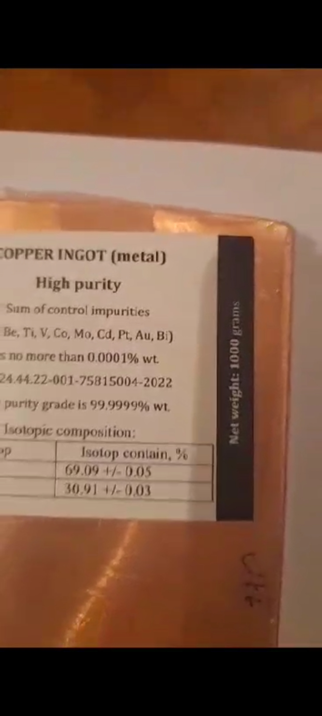 فروش ۱۰۰تا۱۰۰۰تن مس ایزوتوپ با قیمت ۳۱۰۰۰۰۰تومان با مدارک 09300722737نوربخش