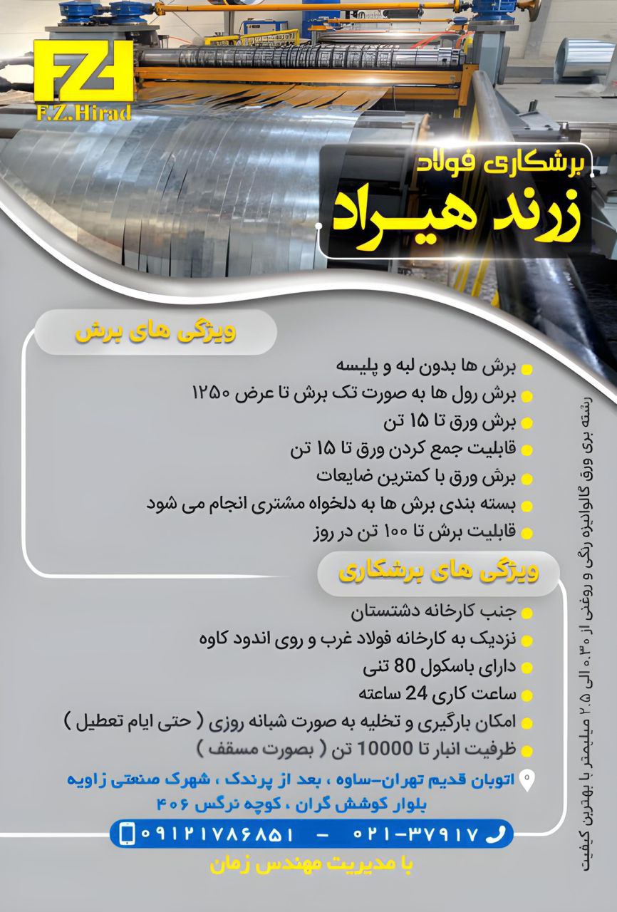#آریا_فولاد_زنده_رود 📌شرکت آریا فولاد زنده رود 🔶تامین کننده انواع ورق و مقاطع فولادی : 🔸گرم 🔸 سرد 🔸گالوانیزه کاملترین موجودی ورق گالوانیزه در انبار اصفهان و کارخانه ✅ارائه کننده خدمات انبار داری ، برش و فرمینگ ☎️031_3114 📞09131686714 📞09138279771 📞09138279772 📞09138279773 📞09138279770 🌐https://ariyafoulad.ir/ 📍https://t.me/ariafoulad_javani 📍https://instagram.com/ariya_foulad جهت مشاده پروفایل آریا فولاد زنده رود کلیک کنید . 📌https://foolad24.com/profile/13349