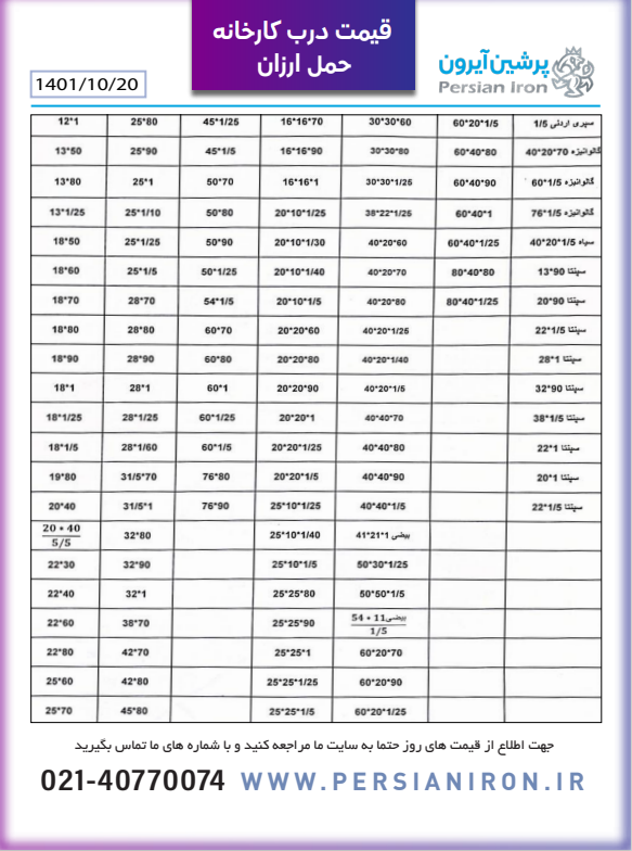 موجودی #لوله #پروفیل 20 nدی 1401 برای اطلاع از جزئیات بیشتر به وبسایت پرشین آیرون از طریق لینک زیر مراجعه کنید https://persianiron.ir/