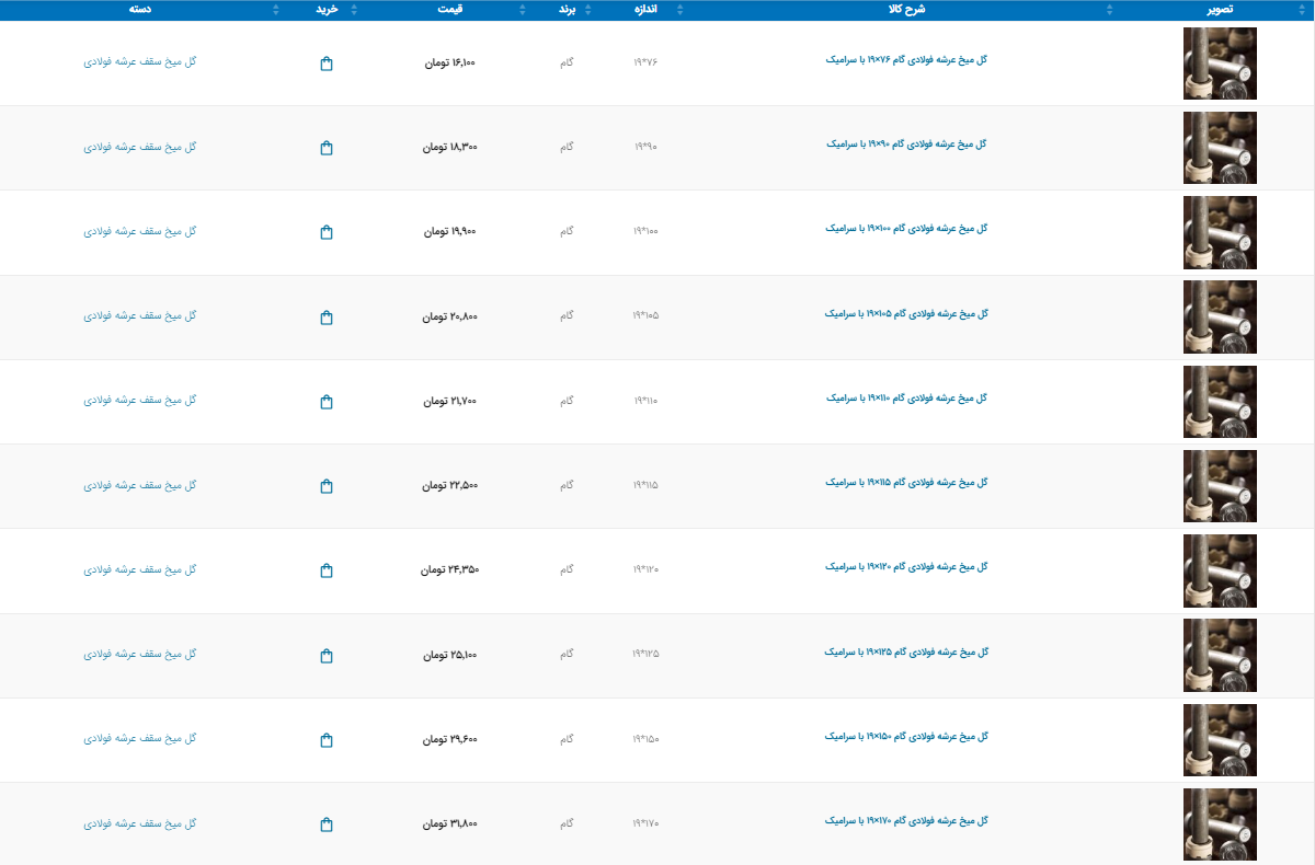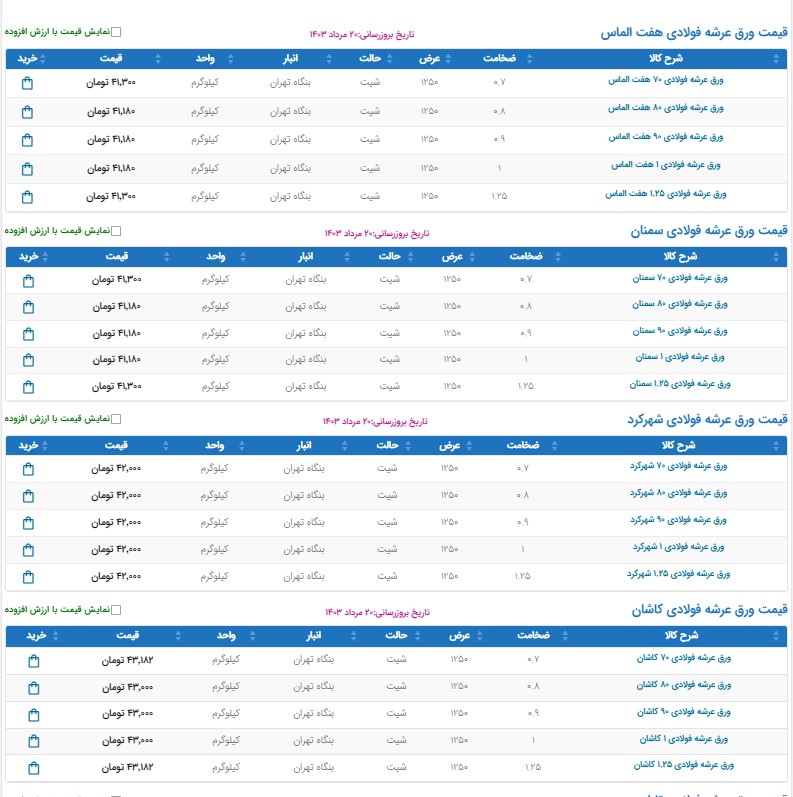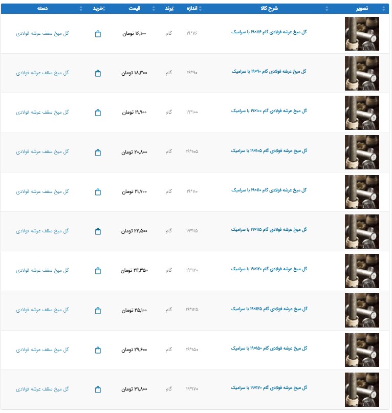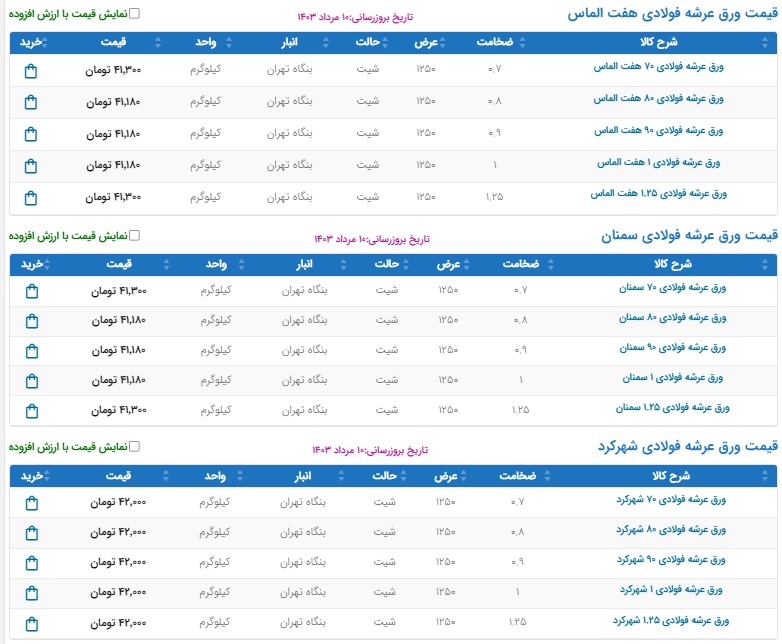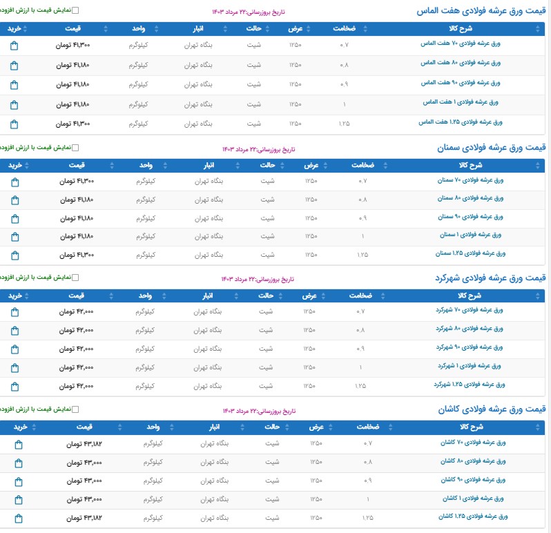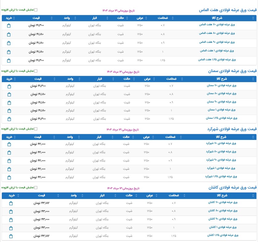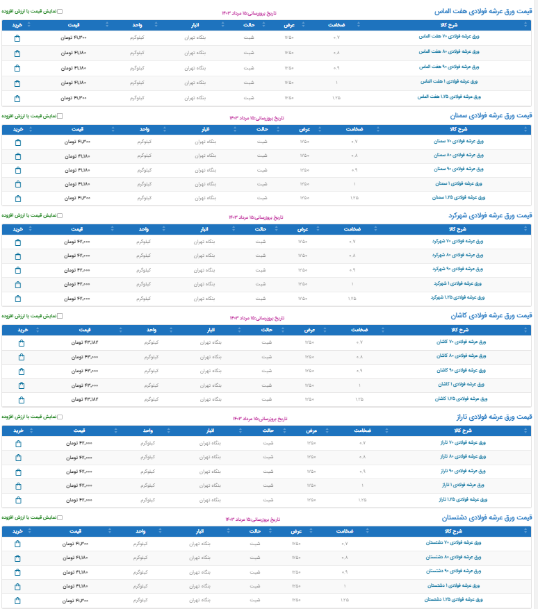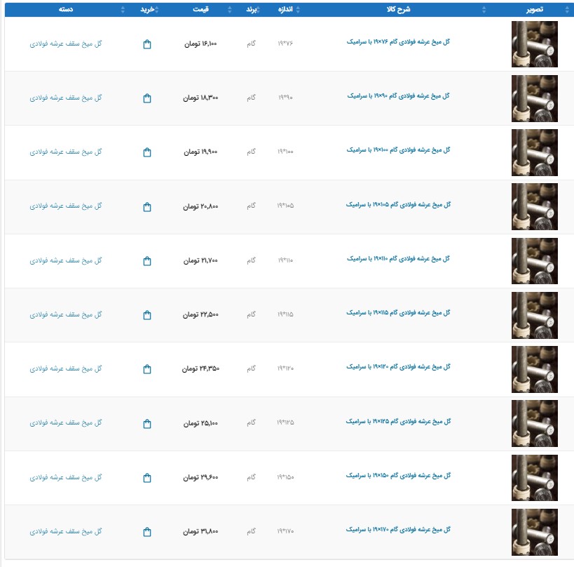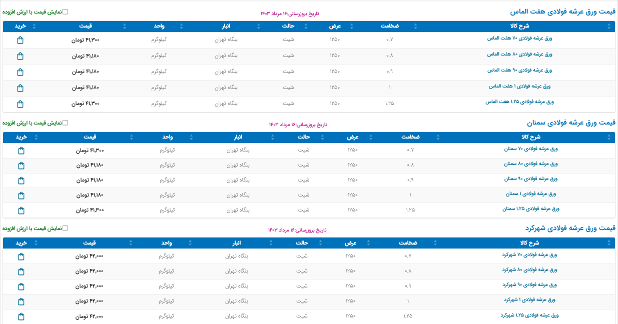 اعلام موجودی تولیدات و مصنوعات فلزی