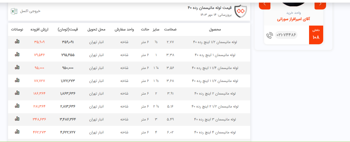 #لوله مانیسمان 💯 🔴سایز1 اینچ رده20 برند وارداتی واحد شاخه 🔴سایز1/2 اینچ رده20 برندوارداتی واحدشاخه 🔴سایز3/4 اینچ رده20 برندوارداتی واحدشاخه 🔴سایز1/2 2 اینچ رده20 برندوارداتی واحدشاخه 🔴سایز2 اینچ رده20 برندوارداتی واحدشاخه 🔴سایز1/2 1 اینچ رده20 برندوارداتی واحدشاخه 🔴سایز3 اینچ رده20 برندوارداتی واحدشاخه 🔴سایز1/4 1 اینچ رده20 برندوارداتی واحدشاخه 🔴سایز4 اینچ رده20 برند وارداتی واحدشاخه 🔴سایز5 اینچ رده20 برندشوارداتی واحد شاخه 🔴سایز6 اینچ رده20 برندوارداتی واحدشاخه 🔴سایز8 اینچ رده20 برندوارداتی واحدشاخه ❗به دلیل نوسانات بازار برای تایید موجودی و قیمت وثبت سفارش تماس بگیرید❗ کانال تلگرام 🤳 https://t.me/azinsepehralvand سایت🌐 www.azinsepehrco.com ☎️☎️☎️☎️☎️☎️ 📞09132381828 📞09394117828 📞03152467528 https://t.me/azinsepehralv