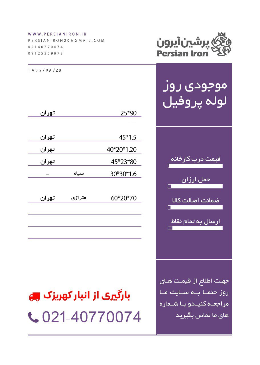 شرکت پرشین آیرون تولید و تامین انواع ورق فولادی ولوله پروفیل برای ارتباط با ما: لینک سایت :www.persianiron.ir 02140770074 09122587966 احمد طرزی