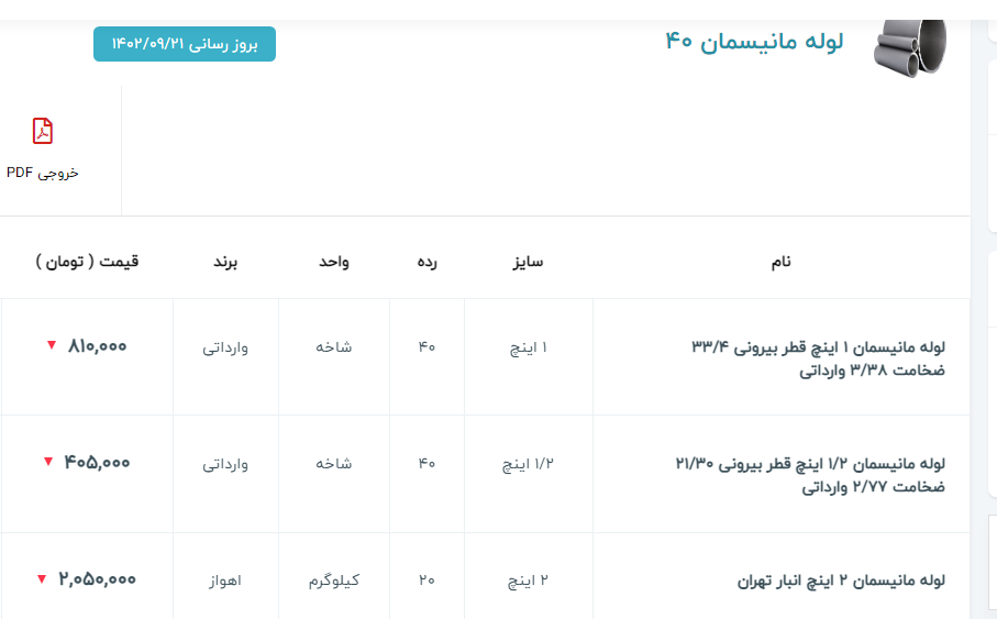 موجودی لوله مانیسمان 1402/09/21 برای استعلام موجودی و قیمت با شماره زیر تماس بگیرید ☎40770074 🪩persianiron.ir 🔵@persianiron_2018 #لوله_مانیسمان #لوله_مانیسمان_4اینچ #لوله_مانیسمان_5اینچ #لوله_مانیسمان_6اینچ