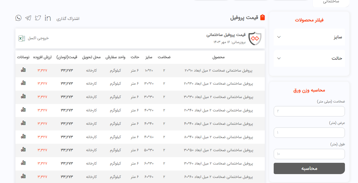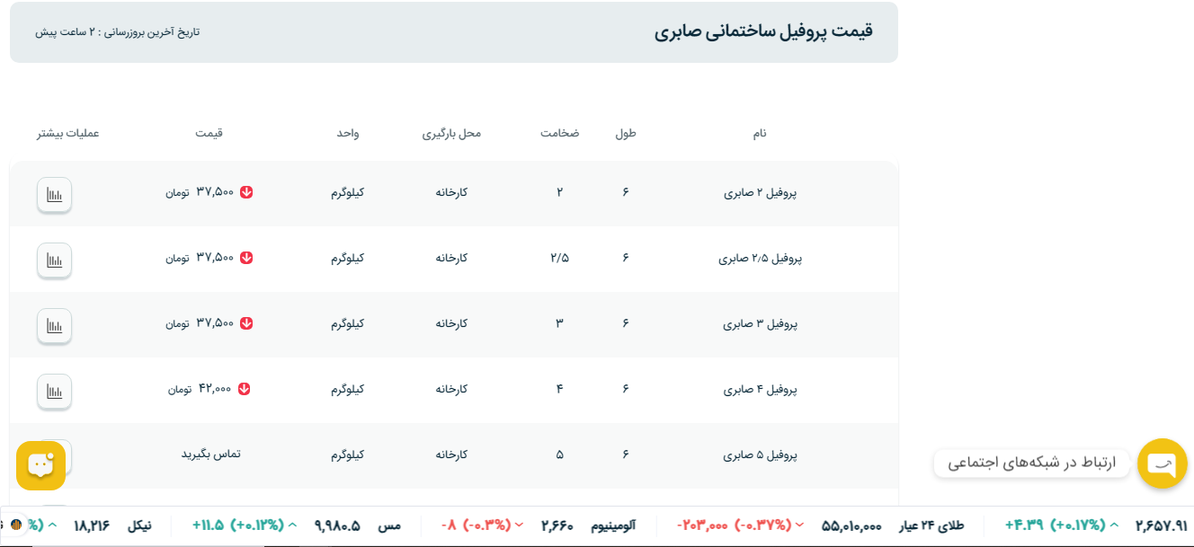 اعلام موجودی پروفیل صنعتی ضخیم