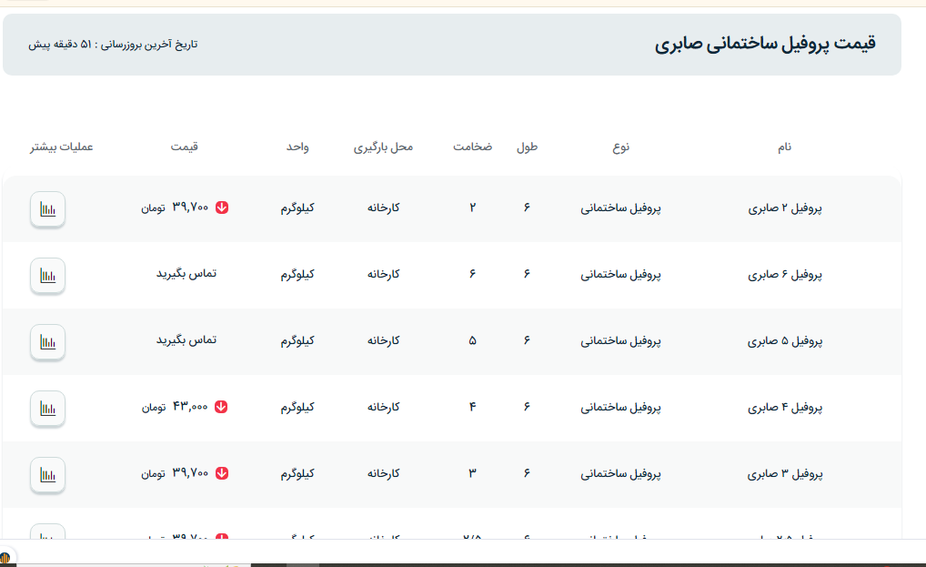 اعلام موجودی پروفیل صنعتی ضخیم
