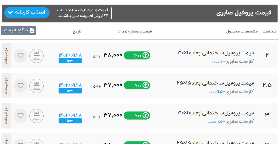#قیمت #پروفیل #کیان_پرشیا 🌎 شنبه 18 آذر ماه 1402 🌎 قوطی و پروفیل ضخامت 2 ⏪ 375000 ریال قوطی و پروفیل ضخامت 2.5 ⏪ 367000 ریال ✅تهران آهن خریدی امن,آسان,ارزان ✅کارشناس فروش :آقای حیدری 🔴 لیست کامل قیمت پروفیل 🔴 ⚙️برای مشاهده کامل جدول قیمت پروفیل می توانید به سایت تهران آهن مراجعه کنید: ✅ (50 خط ویژه): ☎️021-86073000 📱 instagram.com/tehran.ahan 🌏 https://b2n.ir/x13009 🔗 t.me/Tehran_ahan