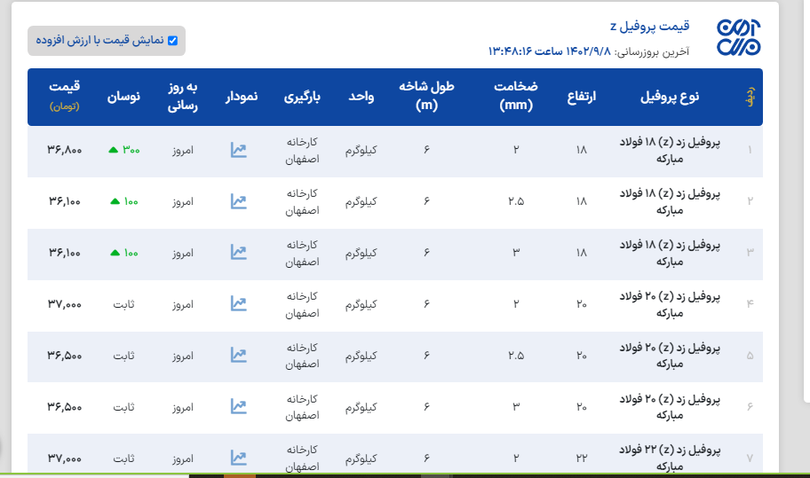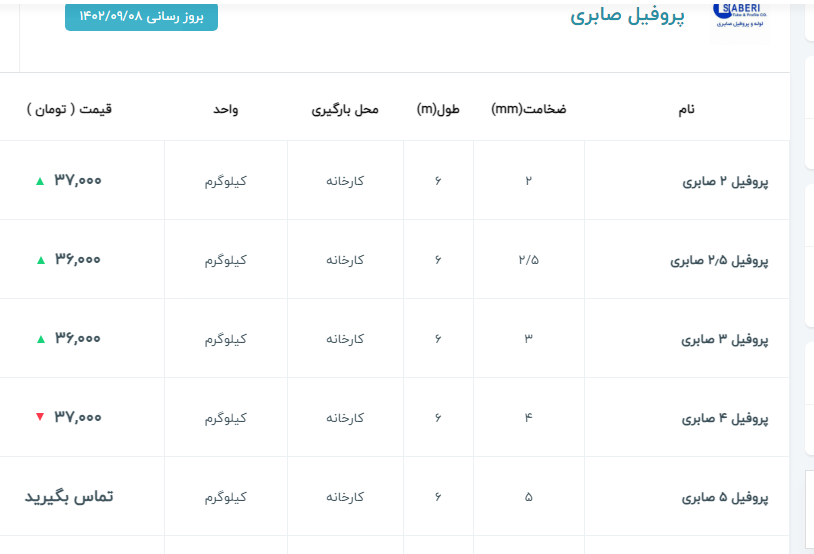 اعلام موجودی پروفیل آراد فولاد آذربایجان #فولاد_صدرا_پروفیل_کاوه پروفیل۲میل؛ 🔸گیلان: ۳۵۴۰۰۰﷼ 🔸مبارکه: ۳۵۹۰۰۰﷼ ✅ تخفیف پای آدرس 🔻کاهش ۳۰۰ تومانی ☎️ 041-37731232 📱 0914-4222215 #پروفیل #آراد_فولاد_آذربایجان https://t.me/afa_steel