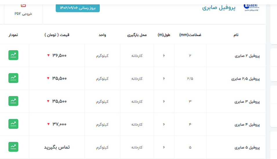 #قیمت #پروفیل #تهران_شرق 🌎 دوشنبه 06 آذر ماه 1402 🌎 قوطی و پروفیل ضخامت 2 ⏪ 365000 ریال قوطی و پروفیل ضخامت 2.5 ⏪ 355000 ریال قوطی و پروفیل ضخامت 3 ⏪ 355000 ریال قوطی و پروفیل ضخامت 4 ⏪ 370000 ریال قوطی و پروفیل ضخامت 5 ⏪ 385000 ریال قوطی و پروفیل ضخامت 6 ⏪ 385000 ریال قوطی و پروفیل ضخامت 8 ⏪ 410000 ریال ✅تهران آهن خریدی امن,آسان,ارزان ✅کارشناس فروش :خانم حمداللهی 🔴 لیست کامل قیمت پروفیل 🔴 ⚙️برای مشاهده کامل جدول قیمت پروفیل می توانید به سایت تهران آهن مراجعه کنید: ✅ (50 خط ویژه): ☎️021-86073000 📱 instagram.com/tehran.ahan 🌏 https://b2n.ir/x13009 🔗 t.me/Tehran_ahan