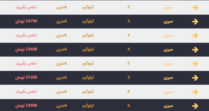 سایز80*80 ضخامت5 حالت6 متری محل تحویل کارخانه سایز90*90 ضخامت5 حالت6 متری محل تحویل کارخانه سایز100*100ضخامت5حالت6متری محل تحویل کارخانه سایز120*120ضخامت5 حالت6متری محل تحویل کارخانه سایز140*140ضخامت 5حالت6متری محل تحویل کارخانه سایز100*100ضخامت6حالت6متری محل تحویل کارخانه سایز120*120 ضخامت6حالت6متری محل تحویل کارخانه سایز60*120 ضخامت 6حالت6متری محل تحویل کارخانه سایز140*140ضخامت6حالت6 متری محل تحویل کارخانه سایز250*150ضخامت6حالت6 متری محل تحویل کارخانه جهت اطلاع از قیمت با شماره 03152467528 داخلی 100-103تماس بگیرید و یا از لینک تلگرام azinsepehralvand1@ ثبت سفارش کنید.