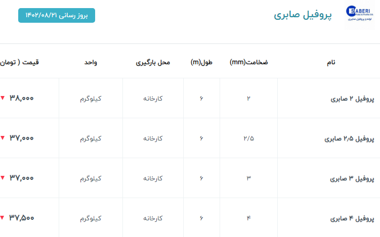 اعلام موجودی پروفیل فولاد369 🔷 فولاد 369 🔷 ⏱تاریخ : 20 آبان 1402 🔷 قیمت پروفیل صدرا 🔷 🏭 محل بارگیری : کارخانه 🔷 2 ▫️ 38,200 🔷 2.5▫️ 37,000 🔷 3 ▫️ 36,000 🔷 4 ▫️ 37,000 📞 021-22210369 📞 021-22241369 🔷 داخلی 106 🌐 www.foolad369.com