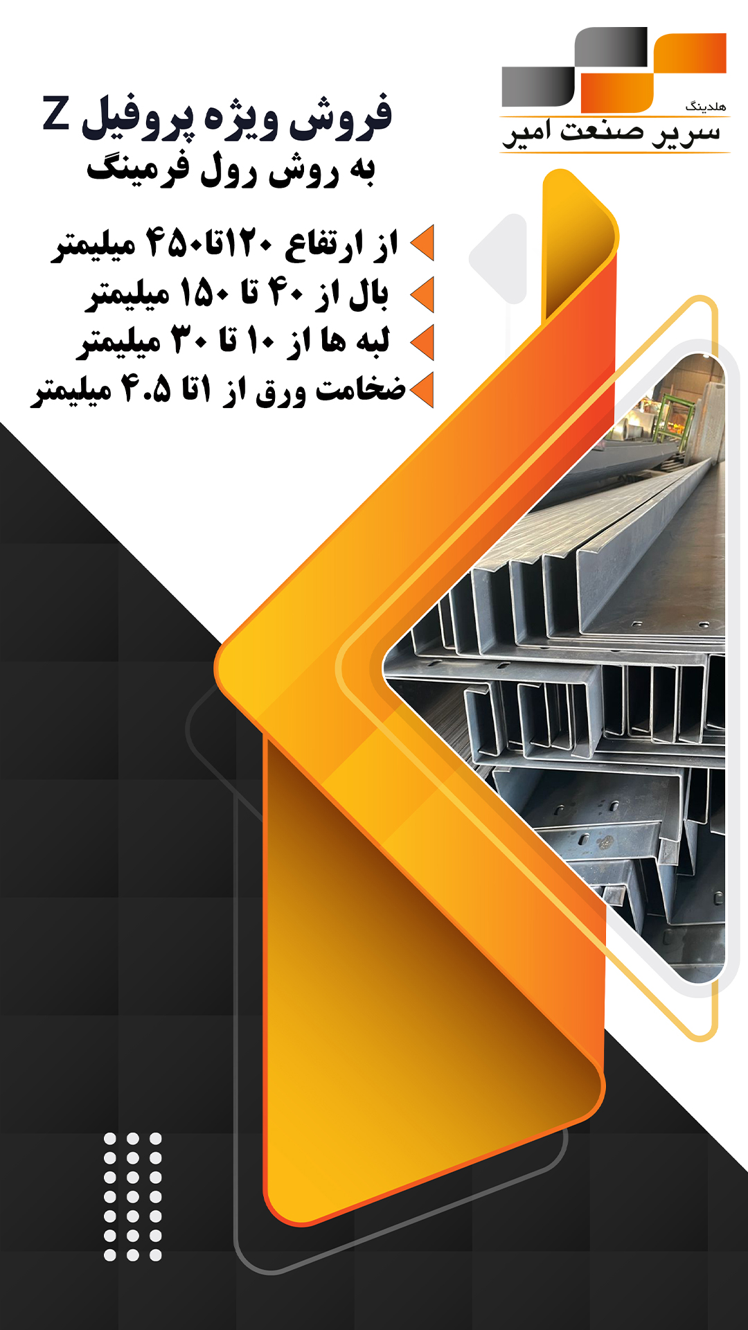 تولید پروفیل زد از ضخامت 1تا 5میل ارتفاع 120تا420میلیمتر بال 40تا 150میلیمتر با هر نوع پانچ درخواستی جنس ورق:گرم-گالوانیزه-روغنی شماره تماس:09901915851