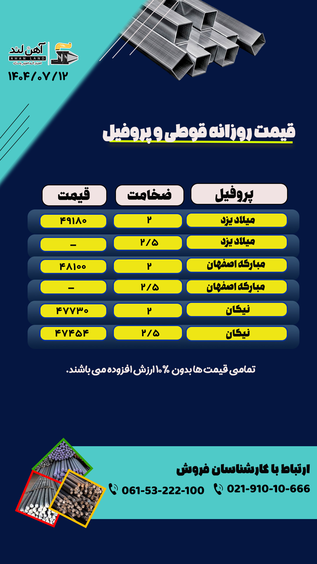 سایزها و ضخامتهای متنوع موجود ✅ مناسب برای پروژههای ساختمانی و صنعتی ✅ ارسال سریع به سراسر کشور + امکان صادرات ✅ ظرفیت نامحدود تأمین 💰 بهترین قیمت بازار + کیفیت تضمینی 📞 برای استعلام لحظهای قیمت و سفارش در تماس باشید